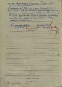 «Пару слов о себе. Чувствую себя хорошо. Новый год справляли на опушке леса наших рубежей под Москвой. Много вспоминал о вас. Дорогая Маня! Прошу тебя об одном — быть спокойной. Помни, что наши братья, сестры и друзья на занятой врагом территории хуже живут, но не теряют силы и уверенности в победе. Я понимаю, что тебе тяжело, но превыше всего ставь наше общее дело, интересы нашей родины. Воспитывай ребят, помогай им правильно понимать сложившуюся обстановку, учи их переносить невзгоды.