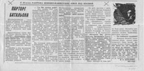 Из газеты «Авангард» — органа Валдайского горкома КПСС Новгородской области (о побывавшей там делегации ветеранов Северо-Западного фронта, в том числе и бывшего парторга батальона 3-й Коммунистической В. М. Стрельникова):