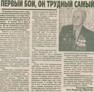 29 декабря жителю нашего округа, ветерану Великой Отечественной войны, полковнику в отставке Николаю Петровичу Сироте исполняется девяносто лет. Беседовали мы накануне — за чашкой чая, в доме у юбиляра на улице Дмитрия Ульянова. Да так откровенно и трогательно, что не могу не рассказать о воспоминаниях бывалого человека…