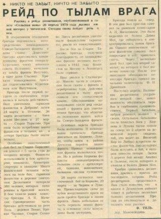 Храбро сражались десантники, дрались с врагом до последнего патрона. Рейд десантников продолжился. Нам стало известно, что в нашем и Демянском районах живет и работает несколько бывших десантников. Просим их откликнуться и дополнить наш рассказ.