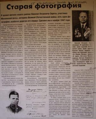 В архиве Николая Петровича Сироты, участника Московской битвы, ветерана Великой Отечественной войны, есть одна фотография, особенно дорогая его сердцу. Сделана она в ноябре 1942 года.