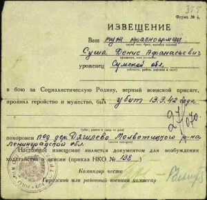 7 марта 1942 г. был тяжело ранен в 7-м бою. К тому времени от старого состава роты осталось человека 4. Командовал ротой Болдано. Комвзвода был Коваленко (старшина). Я был в это время помкомвзводом. Партбюро полка приняло меня перед моим последним боем в кандидаты ВКП(б). Из старых в последнем бою помню Сушу.