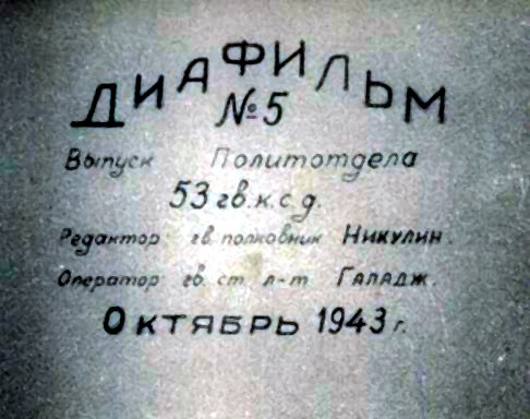 Диафильм 5 Выпуск политотдела 53Гв. Кр.С.Д. Редактор Гв.полковник Никулин